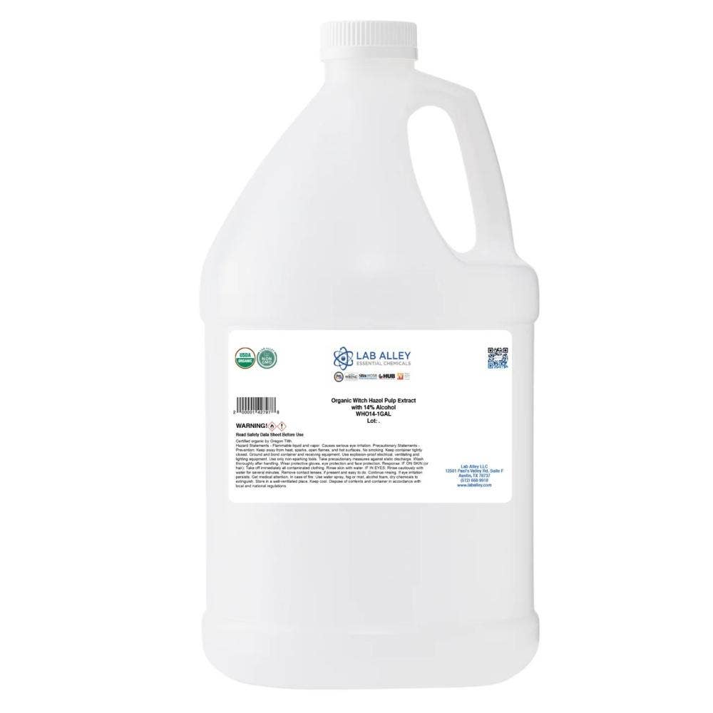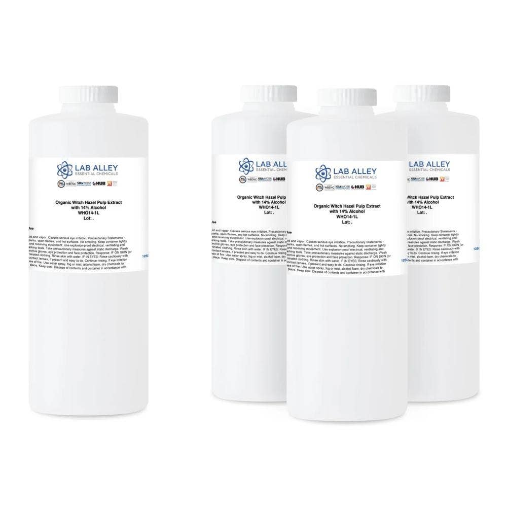 Witch Hazel sold by Lab Alley comes in multiple grades and sizes, ranging from 500mL to 55-gallon drums as well as pallets.