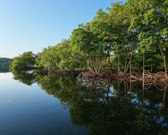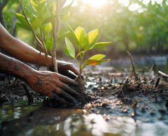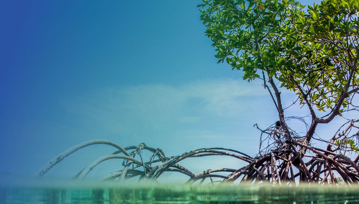 The mangrove tree plays an essential role in the fight against climate change. The mangrove is a hardy, short, bushy tree with uniquely heavy and dense roots that make it especially efficient in carbon sequestration.