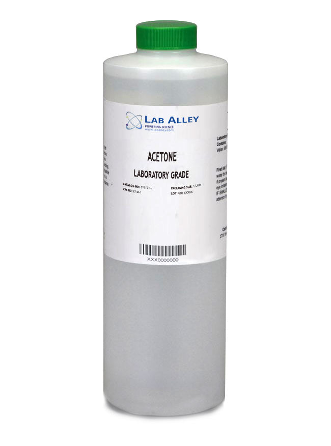 Lab Alley sells only the highest quality acetone and are the reliable choice for lab grade acetone. This product is in stock in multiple sizes ranging from 500 mL to 55 gallons, and by the pallet, all available for quick shipping. Orders are usually shipped in 24-48 hours.