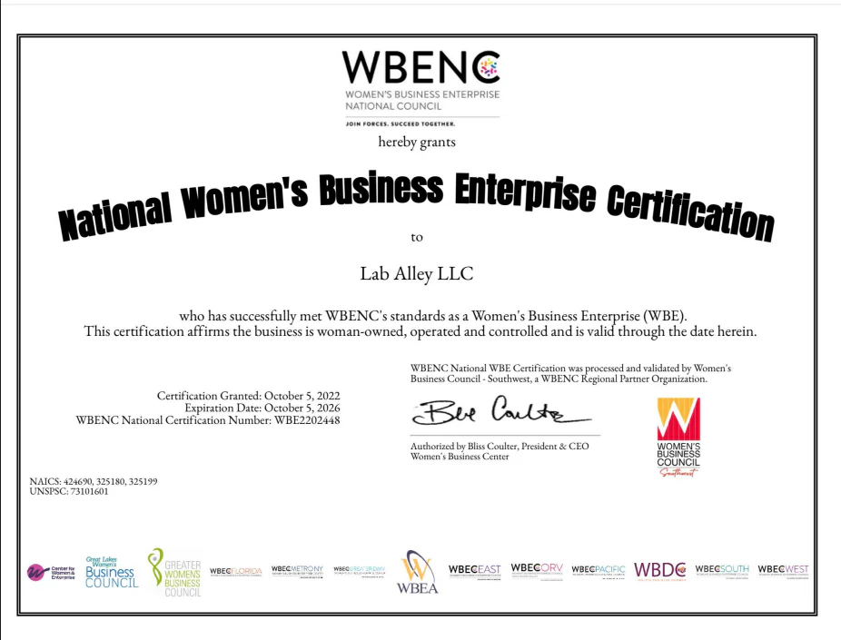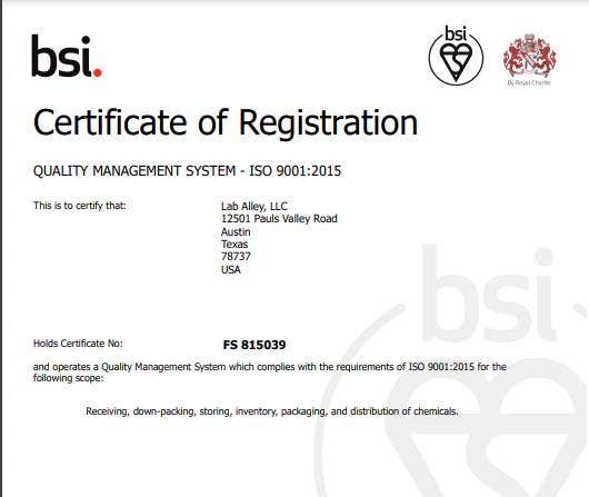 ISO 9001 is an internationally recognized standard for Quality Management Systems (QMS) that ensures businesses follow strict processes to maintain efficiency, continuous improvement, and customer satisfaction. This certification demonstrates Lab Alley meets the highest industry standards, providing customers with trusted, high-quality products.